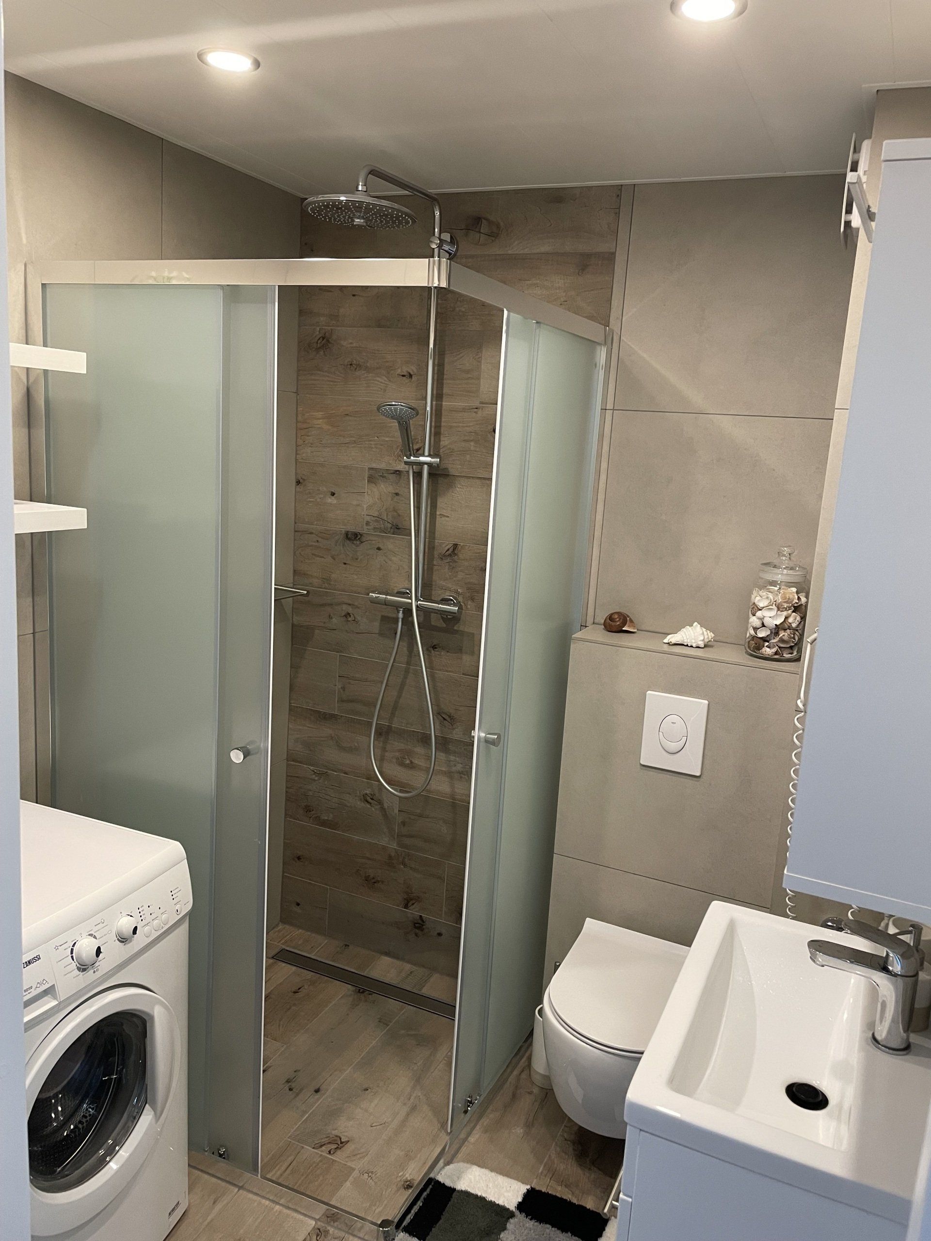 Neues Badezimmer mit ebenerdiger Dusche inkl. Regenduschfunktion.