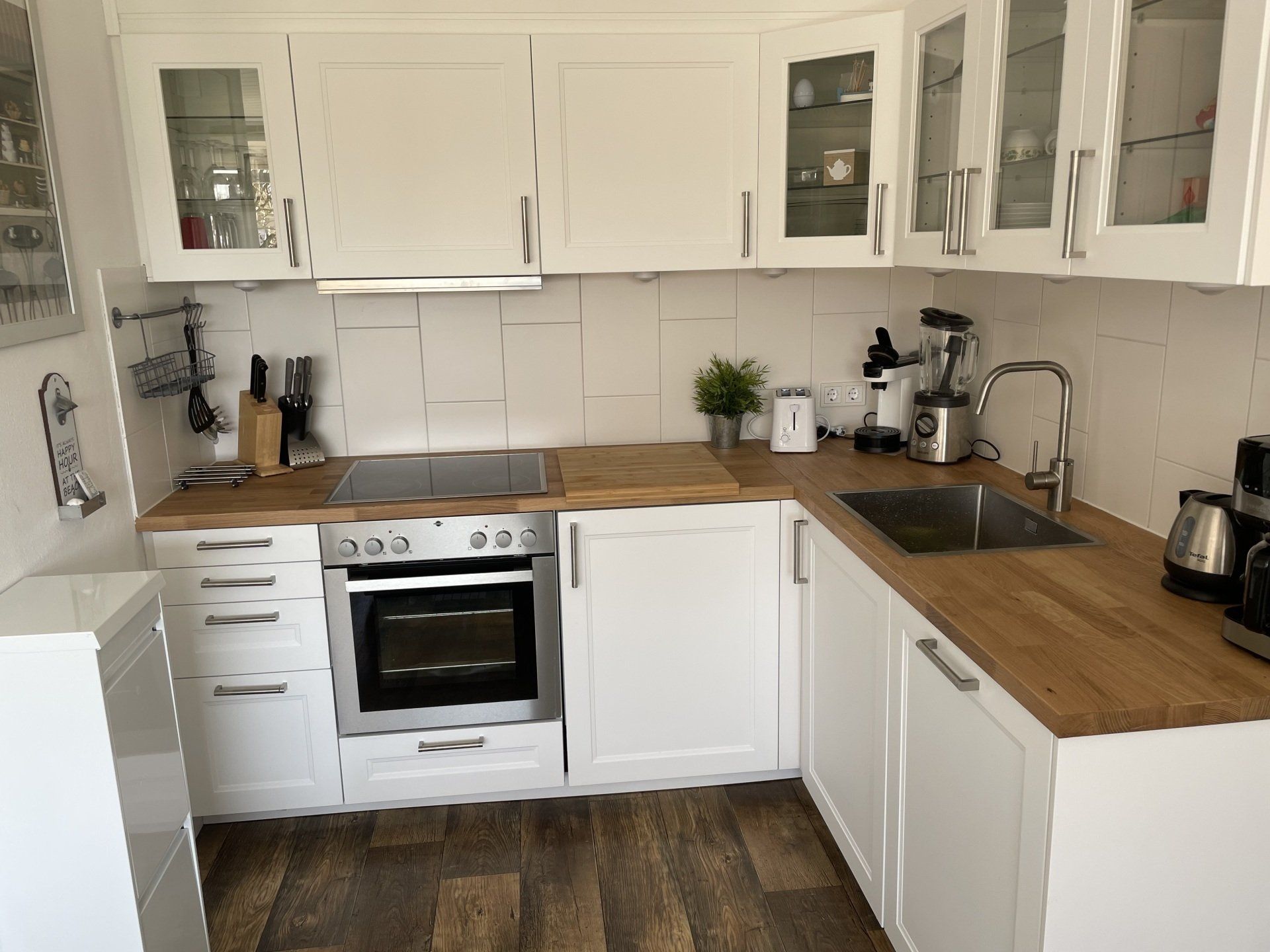Die neue Küche ist vollständig ausgestattet und verfügt über einen Elektro-Herd mit Backofen, Kühlschrank mit Gefrierfach, Toaster, Wasserkocher, eine Senseo und Filter-Kaffeemaschine.