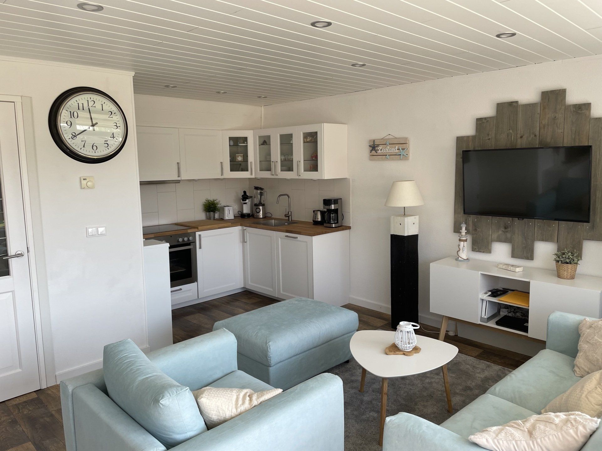 Der helle, attraktive Wohnbereich vereint das Wohn-/ Esszimmer und die offene Küche miteinander. Er verfügt über einen Flatscreen, eine Sitzgruppe für 4 Personen, Blu-ray/DVD-Player, USB/Bluetooth-Radio sowie eine Nintendo-Wii inkl. Spielen.